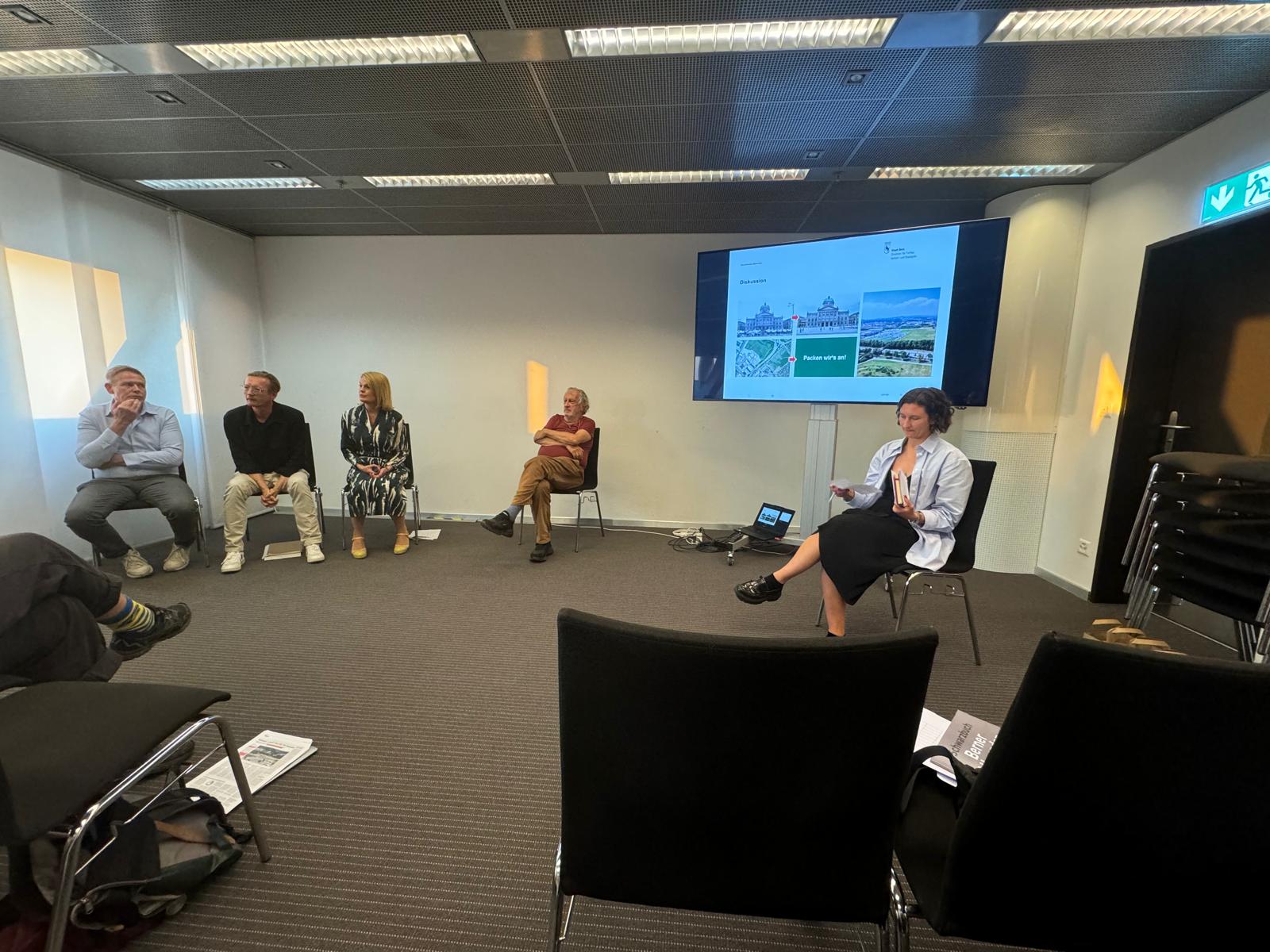 Im Anschluss sprachen Marieke Kruit, Gemeinderätin und Direktorin für Tiefbau, Verkehr und Stadtgrün (TVS), Christoph Schärer, Leiter Stadtgrün Bern, und Karl Vogel, Leiter der Verkehrsplanung, über die Perspektive der Stadt und den Entscheidungsprozess. Ihre Beiträge halfen uns, die Komplexität der Situation besser zu verstehen und förderten einen gemeinsamen Dialog.